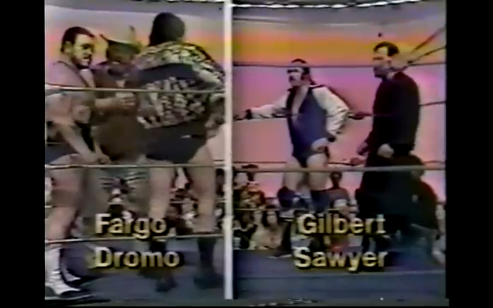 The match cuts out as we instantly go to Fargo and Gilbert, but it seems we did not miss much of anything, as they are still in the feeling-out process. After a few moments, Dromo is tagged in. Gilbert is trapped in a headlock, but can still tag in Terry Sawyer. Fargo tags in as both teams work to keep a fresh man in the ring. Fargo and Dromo can finally get Sawyer under control after a few moments. Dromo grabs the back of the trunks of Sawyer so Fargo can get some free shots. The commentators say that four and a half minutes have gone by, so I think we missed more than I thought.